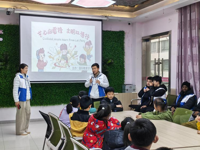 3月15日,国际教育学院携手金龙社区成功举办首次“艺心向雷锋 文明双语行”志愿服务活动。学院青协指导老师李静菡、18名中外志愿者与30余名社区儿童共同参与活动。